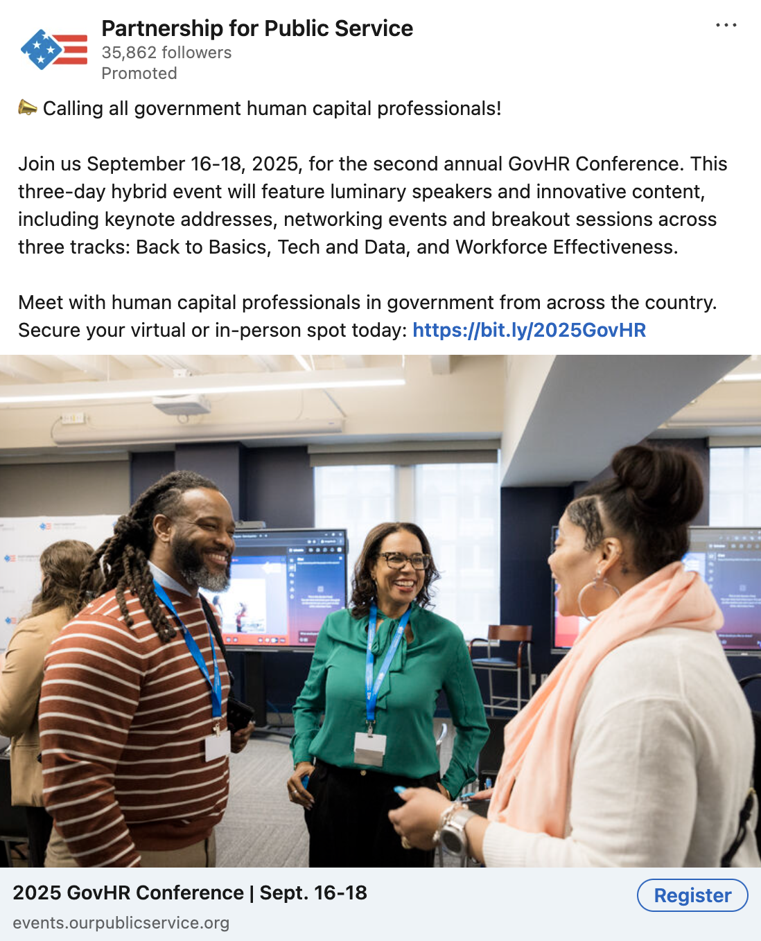 For the past 25 years, the Partnership has worked to build a better government and a stronger democracy, helping federal agencies and leaders serve the public, no matter the political environment. As the primary social media manager and social copywriter for the Partnership, I author posts ranging from . When civil servants were being arbitrary fired and agencies were being terminated at the beginning of 2025, we began executing a new strategic vision that prioritizes supporting and safeguarding the civil service.